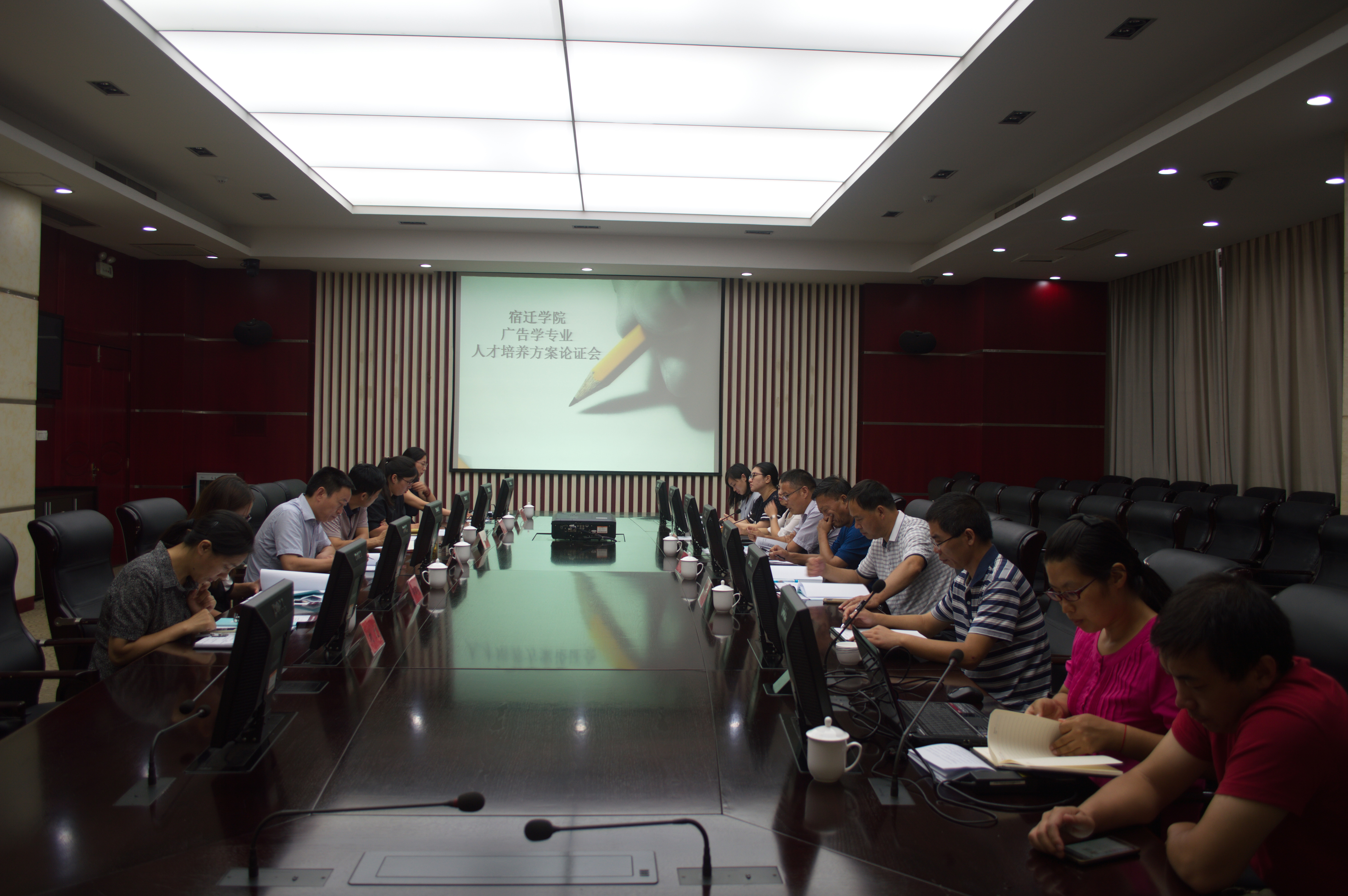 为进一步促进学院人才培养模式落地,扎实推进人才培养方案制(修)订工作,在前期征求意见的基础上,我院于9月9日下午15:00-18:00在图书馆视频会议室召开了广告专业2016版人才培养方案的校内外专家论证会。会议邀请了淮阴师范学院传媒学院院长史晖、宿迁日报报业集团广告部主任邵建萍、宿迁晚报新闻部主任顾园园等高校及相关专业的专家。宿迁学院教务处处长吴绍兵、宿迁学院文理学院副院长刘文、艺术与传媒学院院长马家常、党总支书记李献涛、副院长张进、宿迁学院教务处教学研究科负责人王凤侠等领导、专家及广告系老师参加了会议。会议由张进主持。