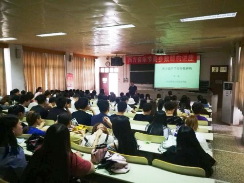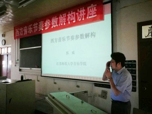 2018年6月21日,我院邀请江苏师范大学音乐学院教授郭威老师来我院讲学,音乐专业全体师生参加此次座谈。郭威老师讲述的是西方节奏解析的课题,在郭老师的带动下,现场学习气氛浓郁,郭老师还积极与学生展开互动,现场气氛活跃,本次讲座让大家初步了解了西方音乐的节奏难点,学生们都收获颇多,是一次很有意义的艺术交流.