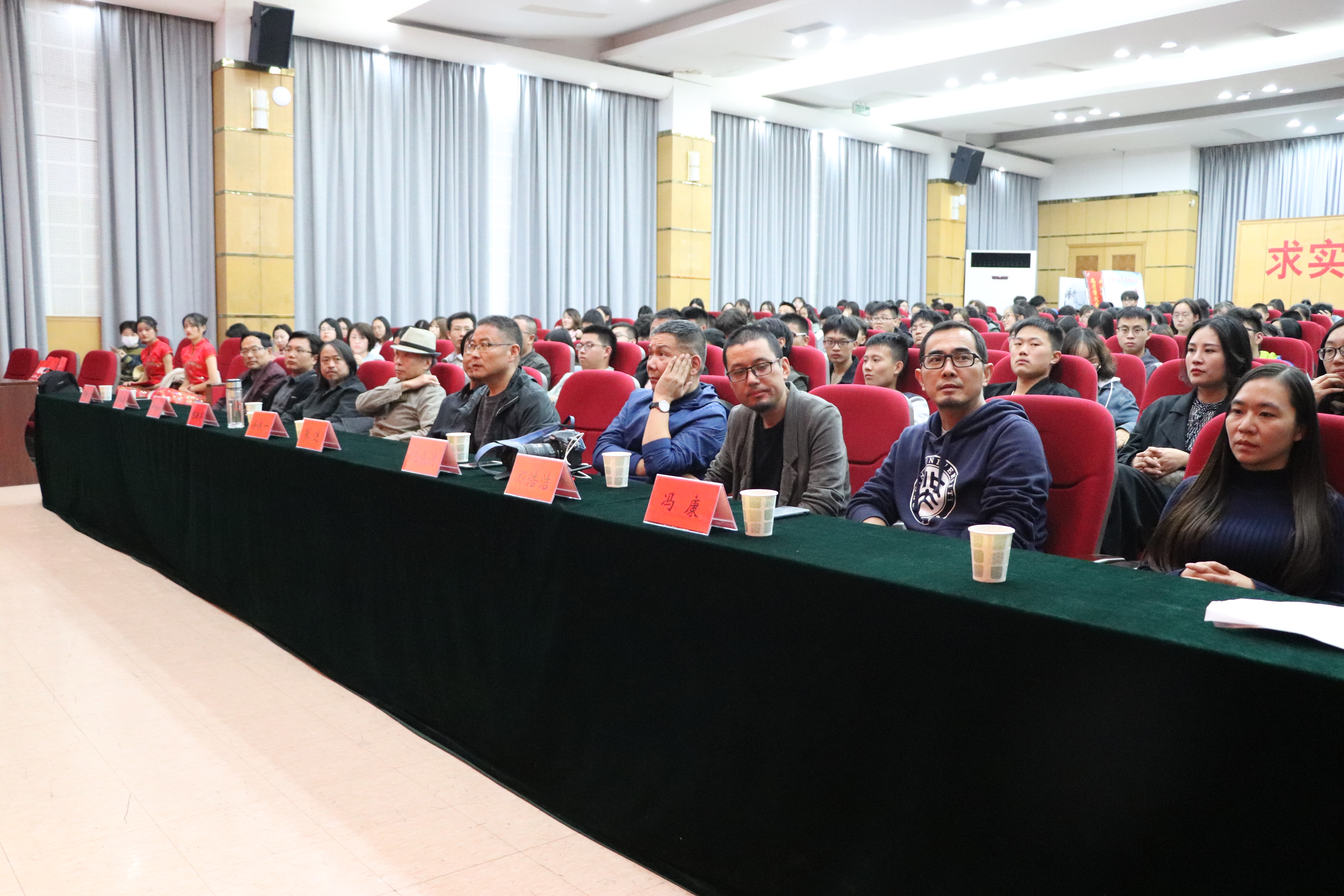 2018年10月17日,江苏雕塑家协会常务副主席,江南大学设计学院徐诚一教授一行来我院开展“踏浪有声-无锡艺术设计界精英讲师团走进宿迁学院”主题活动。晚上6:30在老图报告厅徐诚一教授做了主题为《新思维、新发现、新视角、新素描》讲座。对于设计类专业基础课的目标、内容和形式进行了多角度的探讨。结合主题广告创意设计大奖赛获奖作品赏析,无锡市广告协会副会长、资深广告人沈燕清会长做了主题为《感知世界 物联中国》讲座。来自无锡红五星展示设计总监仲成和、无锡艾德无线广告有限公司创意总监郑浩洁、纸加品牌创始人,金印良品马灿荣分别做了主题为《空间设计ABC》、《大数据下的互联网+广告》、《纸美东方》讲座。他们从市场与需求角度对产品设计、空间设计、广告设计、数字媒体等设计行业发展趋势进行剖析。鼓励学生有浓厚的设计兴趣基础上,还需宽广的设计思路和新颖的设计创新。最后,艺术与传媒学院张进副院长对此次讲座进行了总结,并由衷的感谢各位教授和行业专家们的精彩讲座。