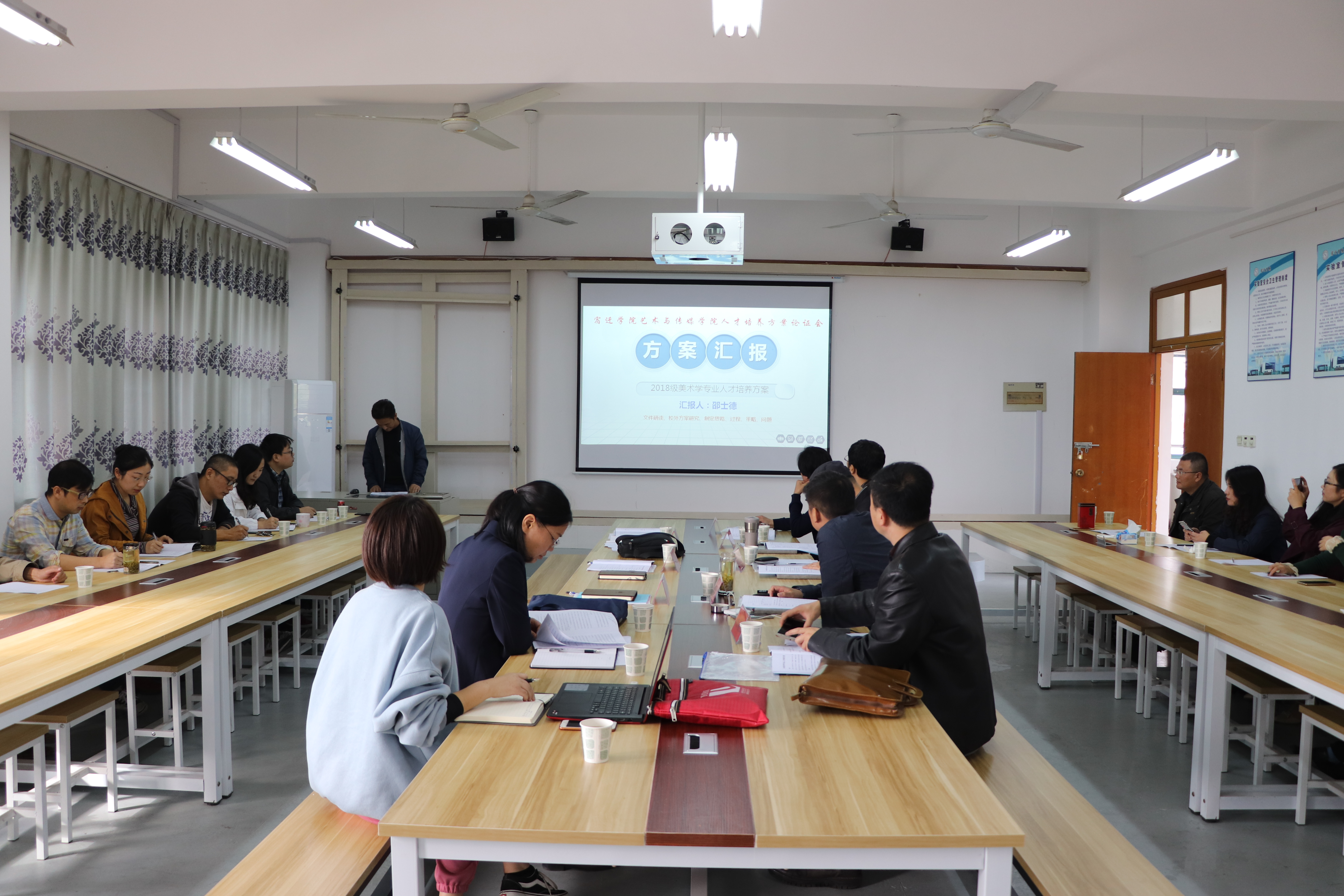2018年10月20日,艺术与传媒学院在艺术楼召开2018级人才培养方案论证会。参加会议的有各专业论证专家、教务处副处长嵇会祥、艺术与传媒学院所有院领导、系主任和专业教师。