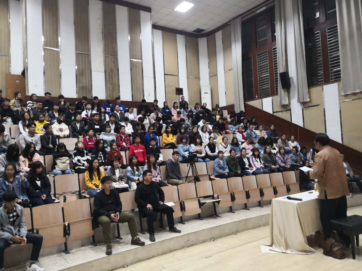 到场的师生都被传统戏剧魅力所吸引,爆发一阵阵发自内心的热烈的掌声,在刘馆长精彩的讲解和表演的感染下,同学们纷纷表示要接触欣赏戏曲音乐的作品,提高自身舞台表演的能力。