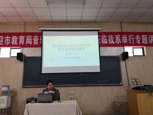 苗处长分别从宿迁音乐的教育现状,教师资格证的取得需具备的知识和入职需具备的素养三个方面进行详细讲解,使在座的师生全面而具体的了解宿迁市音乐发展的方向和作为一名中小学音乐教师所应具备的知识和素养。