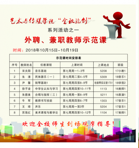 艺术与传媒学院开展2018年“金秋论剑”系列活动-活动一-外聘、兼职教师示范课