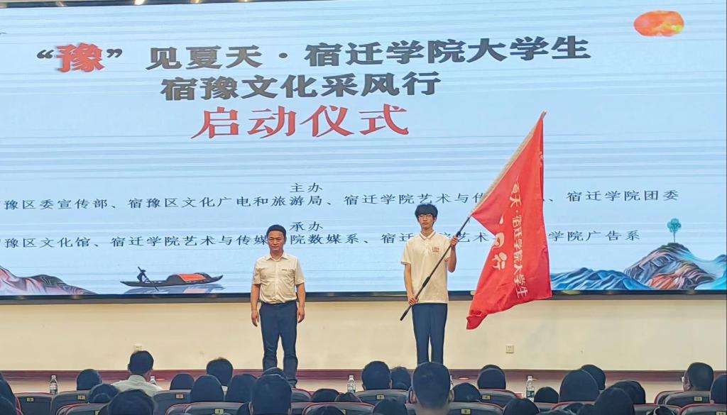 仪式上,邵士德为学生代表授旗;与会领导共同启动了“豫”见夏天·宿迁学院大学生宿豫文化采风行活动。
