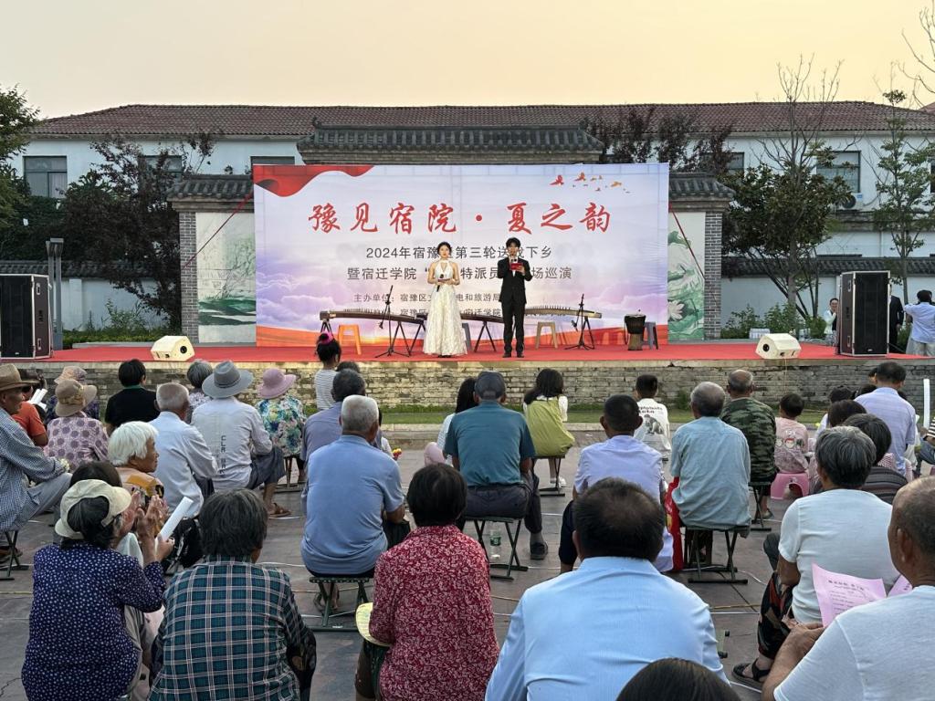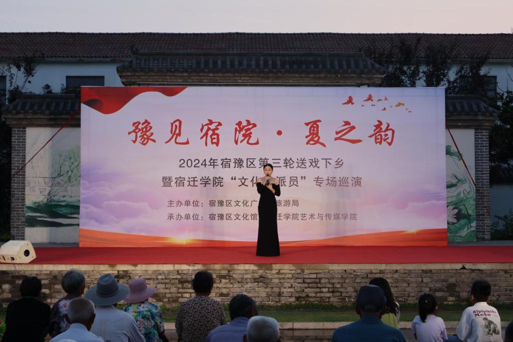 为深入学习贯彻习近平新时代中国特色社会主义思想,全面贯彻新时代党的乡村振兴方略,扎实推进“文化赋能乡村”工作,由宿迁学院艺术与传媒学院、宿豫区文化馆共同承办的“豫见宿院·夏之韵”2024年宿豫区第三轮送戏下乡暨宿迁学院“文化特派员”专场巡演活动第一场在宿豫区曹集乡举办。文艺汇演中,歌唱、舞蹈、器乐演奏等各式各样的文艺节目相继上演,现场座无虚席,掌声不断,艺传院为乡民们带来了一场别样的视听盛宴。
