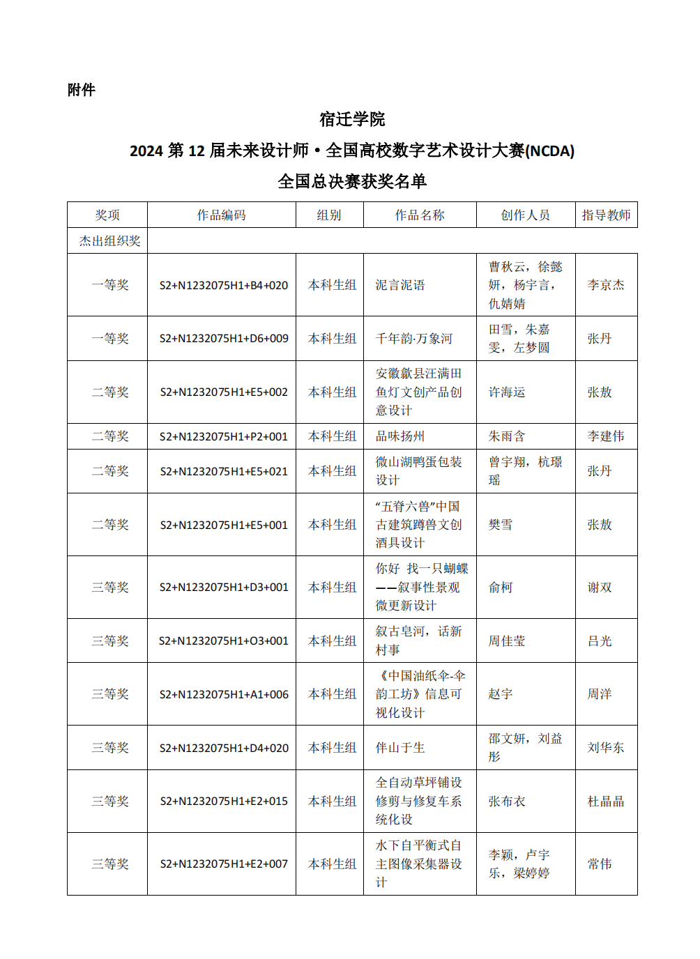 近日,2024第12届未来设计师·全国高校数字艺术设计大赛(NCDA)全国总决赛获奖名单揭晓。我院参赛作品斩获国家级奖项12项,其中一等奖2项;二等奖4项;三等奖6项。另获省级奖50项。