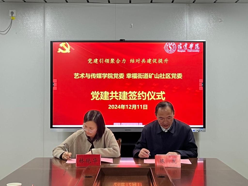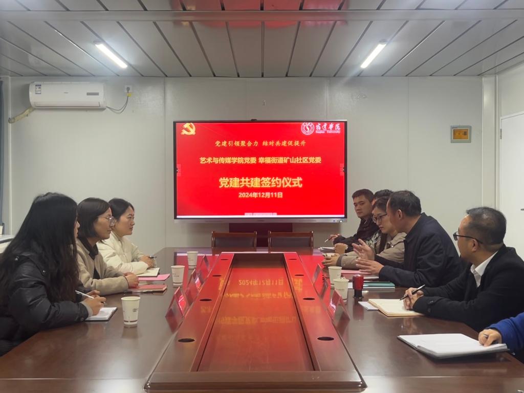 12月11日下午,艺术与传媒学院与宿城区矿山社区联合举办了党建结对共建仪式。出席仪式的有矿山社区党委书记、居委会主任林艳华,以及艺术与传媒学院领导班子成员、各支部书记和辅导员。