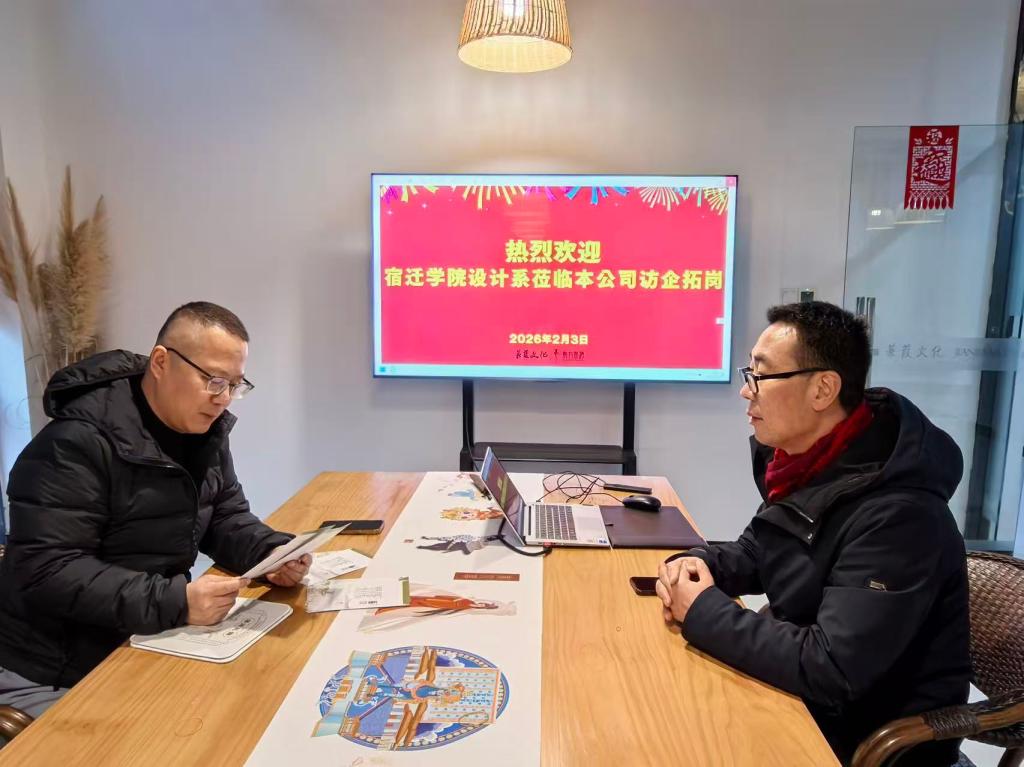 设计系团队来到宿迁市蒹葭文化发展有限公司,重点考察了企业文化创意产品开发、品牌形象设计、空间艺术布置等业务领域。在公司负责人的陪同下,系主任常伟参观了设计工作室和产品展示区,详细了解了从创意构思到市场落地的完整流程。双方围绕设计类专业学生的实践能力培养、项目化教学、以及如何将地域文化元素融入设计作品等议题展开了热烈讨论,并就共建实习实训基地、开展横向课题合作等达成了共识。