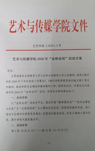 艺术与传媒学院2020年“金秋论剑”活动方案