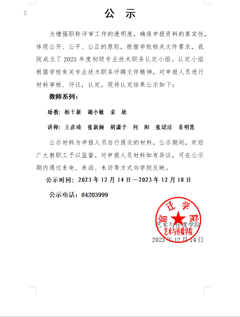 2023年度初级专业技术职务认定结果公示