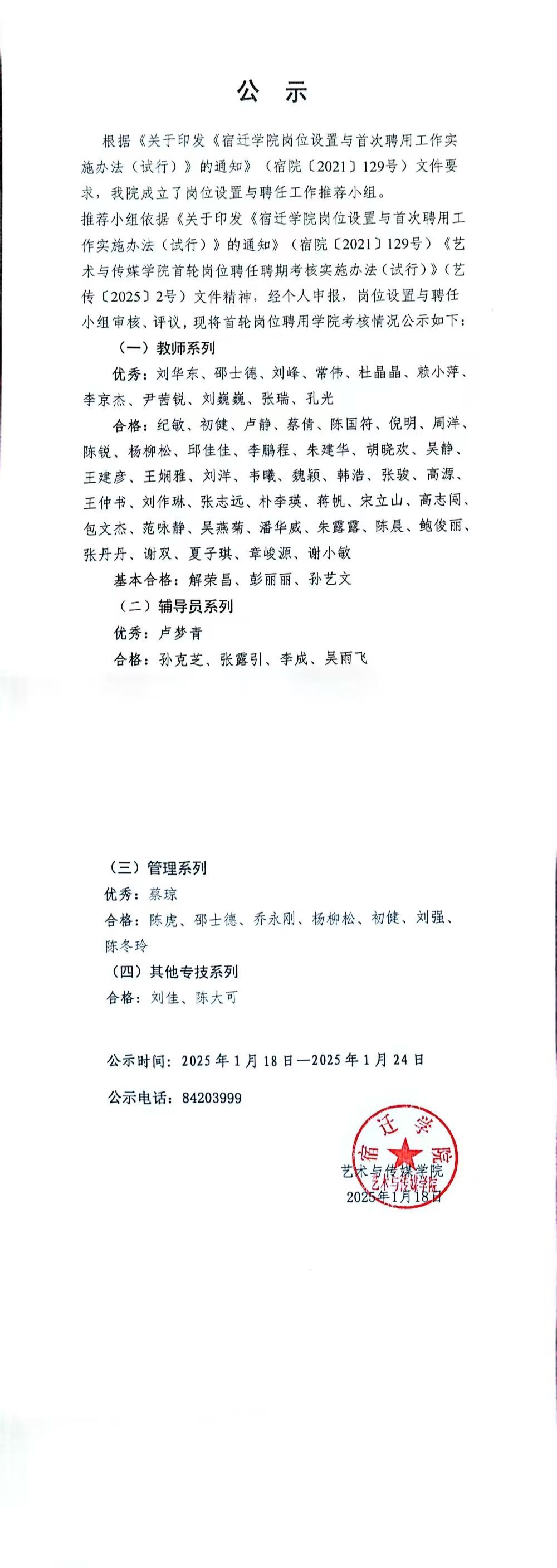 艺术与传媒学院首轮岗位聘任考核结果公示