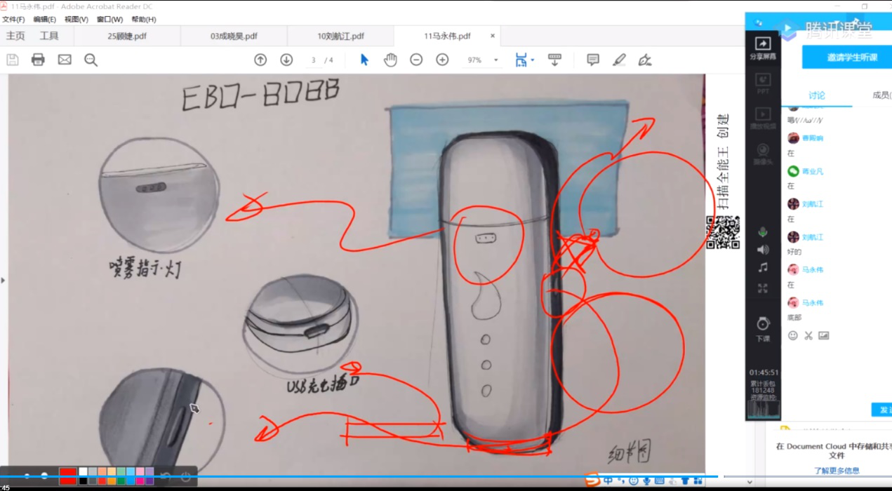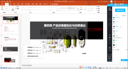 《设计表达》课程是产品设计专业的一门非常重要的专业基础课程,设计表达技法是工业设计中快速展示设计方案和效果的一种重要手段,也是设计师记录构思过程、推敲创意方案的主要方法。本课程是一门绘画技法性很强的专业课程,包含了多种绘图工具的艺术表现技法,如果单纯依赖网络资源教学是远远不够的,所以我采用了线上精品课程发布,结合本人实际教学直播讲授、示范指导的形式开展教学任务,最大程度的利用了网络资源的便利性,和时效性。