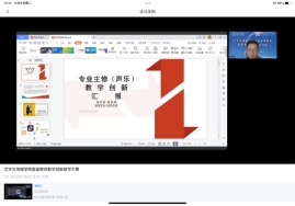 会上,鲍俊丽、杜晶晶、高志闯、王建彦4位参赛教师依次围绕主题“美术课程资源的转化与利用—校本课程创建”、“产品系统设计”、“专业主修(声乐)教学创新汇报”、“基于问题导向的大众传播学翻转课堂教学创新实践”进行了详细汇报,随后3位专家从教学理念、教学方法、课程思政等方面对四个课题进行了深入的点评和指导,既有理论的深度又有实践的维度。