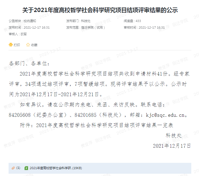 关于2021年度高校哲学社会科学研究项目结项评审结果的公示