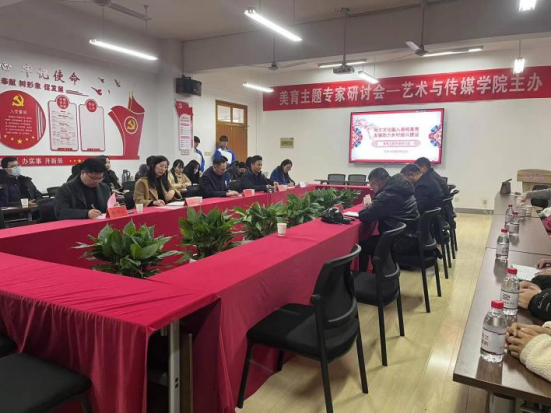 研讨会上,艺术与传媒学院党委副书记陈虎致辞。他表示,我们要提高政治站位,重视学校美育工作改革与研究,充分利用地方特色资源,完善教学体系建设,提高学生人格修养和审美追求,扎实做好育人工作。随后,通过专家报告和现场交流等环节,学院师生和专家们就大学生素质培养、传统文化、特色非遗项目、乡村文化业态等相关问题展开深入探讨,现场发言踊跃,气氛热烈。