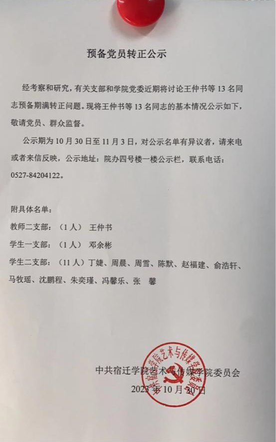 预备党员转正公示