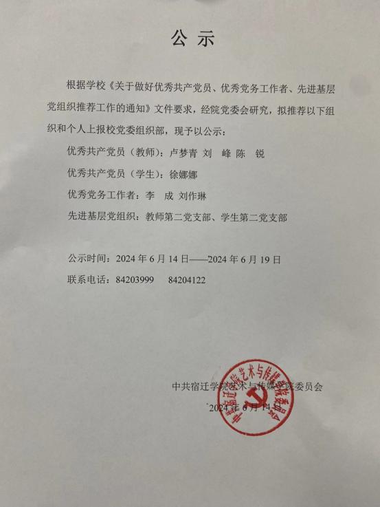 2024年艺术与传媒学院“两优一先”推荐结果公示