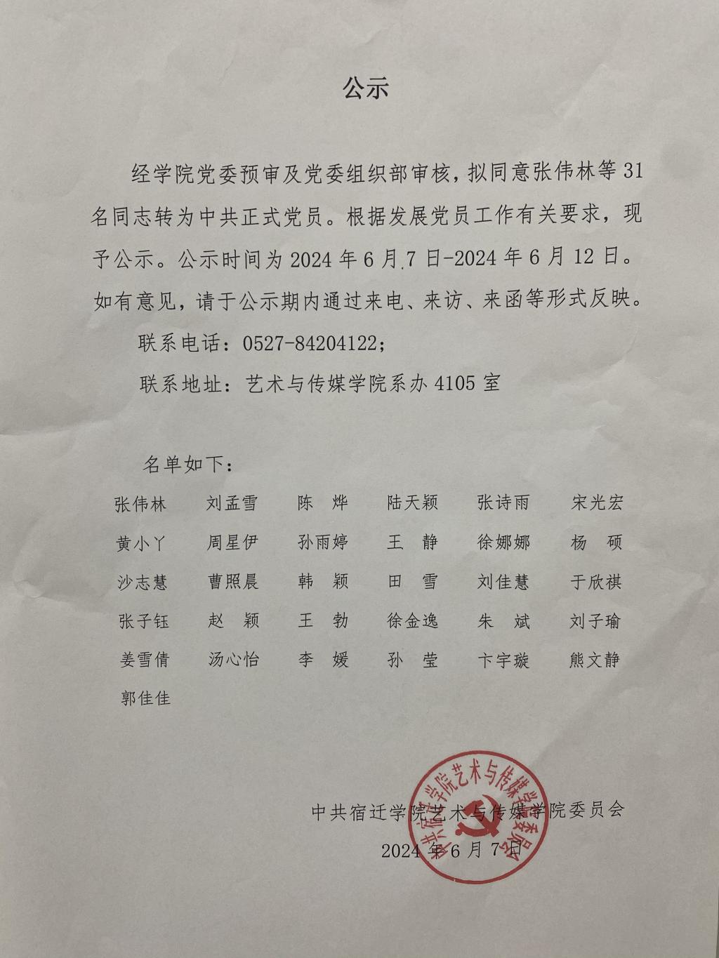 2024年上半年预备党员转正公示
