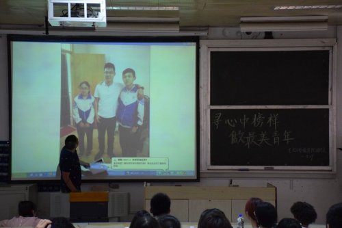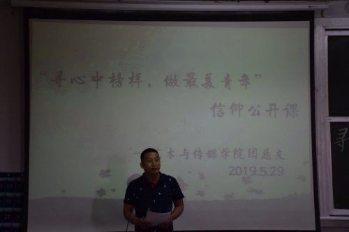 好人是我们身边的榜样,好人也是我们温暖的源头。为加强高校共青团思想政治引领工作,教育大学生培养和践行社会主义核心价值观,我校艺术与传媒学院团总支于5月29日在学校第四阶梯教室特此举办以“寻心中榜样,做最美青年”为主题的信仰公开课。本次信仰公开课由2017年5月4日荣登首届“宿豫好人”榜的马树来老师为我们讲课。艺术与传媒学院2017级全体学生干部共同参与。