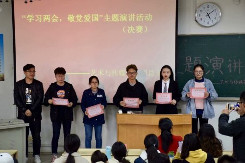 为庆祝祖国七十周年华诞,激发学子的爱国之情,提高我院共青团员的思想道德修养,于2019年3月31日下午四点整,艺术与传媒学院团总支在学校4号教学楼104教室成功举办了“学习两会,敬党爱国”的主题演讲活动。出席本次活动的嘉宾有:艺术与传媒学院团总支书记刘颖春老师,院团总支副书记石阿娜,伍倩,杨广兵。