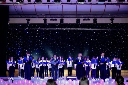 大赛伊始,由“一库”乐队带来精彩的开场表演——《一万次悲伤》,跌宕的旋律活跃了整个比赛的紧张气氛。紧接着,由主持人隆重介绍了出场的评委嘉并宣读了活力团支部风采大赛的两个环节——班级团日活动展示和经典诗文朗诵表演。各位评委老师则根据各团支部工作主题、活动效果、现场表现、积极程度进行评分。比赛开始之前,一酷乐队用美妙的歌声和极具感染力的乐声点燃了现场的气氛。然后,比赛正式拉开序幕。各班团支书代表走上舞台高呼自己的口号,与台下的本班同学积极互动,洪亮的声音,逼人的气势,震慑全场,余声绕梁,久久不息。她们依次上台播放PPT,展示各团支部风采——在优美的背景音乐中,各班代表向大家介绍了团支部的活动主题,各有千秋,向评委老师们展示自己班的团日活动的特色和优点。其次,各班级进行本次风采大赛的第二个环节——经典诗文朗诵。伴随着慷慨激昂的背景音乐,一首首充满着爱国情怀的诗歌从同学们的口中朗朗诵来,那坚定的眼神、肯定又自豪的话语,充满力量的动作,无不体现出炎黄子孙们的骄傲与自信。其中,18数媒1班表现尤为独特——同学们用一幕幕连续情景剧向宿院表达了他们对班级的热爱、对宿院的向往。18音师1班更是拿出了看家本领——动听的歌曲,优美的舞蹈,将他们对祖国的热爱和激情澎湃的心情表现得淋漓尽致……与此同时,台上台下相互呼应,默契十足,叫好声接连不断,欢呼如潮,将现场一次又一次地推向高潮,尽情地展示着我们宿院艺传学生的青春与活力。在同学们的欢呼声中,各班表演进入尾声。评审嘉宾们认真地观看记录,并根据赛前的党团知识竞答赛况,为每一个节目公正负责地进行评分。经过班级之间的激烈角逐,最终获得艺术与传媒学院活力团支部风采大赛三等奖的班级是:18产设1班、18产设2班、18美术1班和18音乐班,院团总支副书记杨广兵、伍倩为其颁发奖项;获得二等奖的班级是:18广告班、18数媒班和18美师1班,院团总支副书记石阿娜为其颁奖;获得一等奖的班级是18音师班,院团总支书记刘颖春老师上台为他们颁奖。活动最后,院团总支全体成员合影留念。