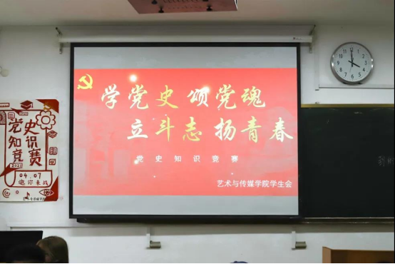 4月7日下午,宿迁学院艺术与传媒学院举行“学党史 颂党魂 立斗志 扬青春”党史知识竞赛(初赛)。以赛促学,促进作为大学生、作为中国共产党接班的我们,学习党史,跟着党走,让党的光辉历史照在我们学习的道路上。每组为三个选手,由班级推荐产生,共二十个小组参赛。比赛设立必答题,每个队伍答三道题,答对得10分,答错不扣分,限时十五秒。比赛本着公平公正的原则,如分数一样,则按答题时间排序取前十名进入决赛。比赛现场气氛紧张,竞争激烈,扣人心弦。比赛中,选手们都精神饱满,认真作答,多个小组以满分通过初赛选拔,在观众互动环节中,观众答题也异常精彩,现场气氛活跃,把活动推向高潮。学习历史,可以看成败、鉴得失、知兴替。习近平总书记指出“历史是最好的教科书”、“历史是最好的老师”、“中国革命历史是最好的营养剂”。历史是从昨天走到今天,未来是从今天走到明天,过去、现在、未来是相通的,真正了解过去,才能正确认识现在,正确认识现在,才能更好的科学把握未来。进入决赛名单,2020级:音师1、音师2、美术、美师1、美师2、数媒2019级:音师2、美师1、美师2、数媒。恭喜进入决赛的十支队伍!常言道,无限风光在险峰,那么决赛又会是怎样的场景呢?让我们来看一下决赛的环节设置吧!第一板块:必答题,每支队伍五道必答题,答对加5分,限时15秒,再依据每组得分进行排名,进行下一环节的抢答题,前四名为第一小组,第五至七名为第二小组,第八至十名为第三小组;第二板块:抢答题,共30道抢答题,每道题10分,限时20秒,第一小组4支队伍进行抢答,第二小组3支队伍进行抢答,第三小组3支队伍进行抢答;第三板块:才艺展示,每支队伍进行红色主题才艺展示(形式不限),才艺比拼后评委现场打分。