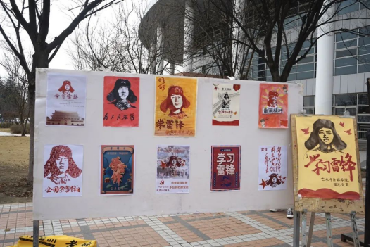 为弘扬雷锋精神,宿迁学院艺术与传媒学院团总支于2021年3月5日中午12点在一二餐之间举行了缅怀雷锋活动。上午11点半时,各部门部员准时到达活动地点,有条不紊的布置展览。一步步的搭建起横幅,贴上展览作品等工作准备。他们的工作配合井然有序。
