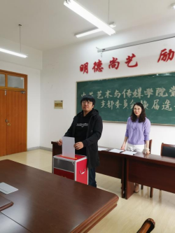 艺术与传媒学院党委学生第一党支部支部委员换届选举在美术楼6209举行。本次选举学生第一党支部应到38人,实到38人。其中正式党员9名,包括教师党员7名,学生党员2名;预备党员27名。参会并有选举权和被选举权的有9人,支部大会由孙克芝同志主持。
