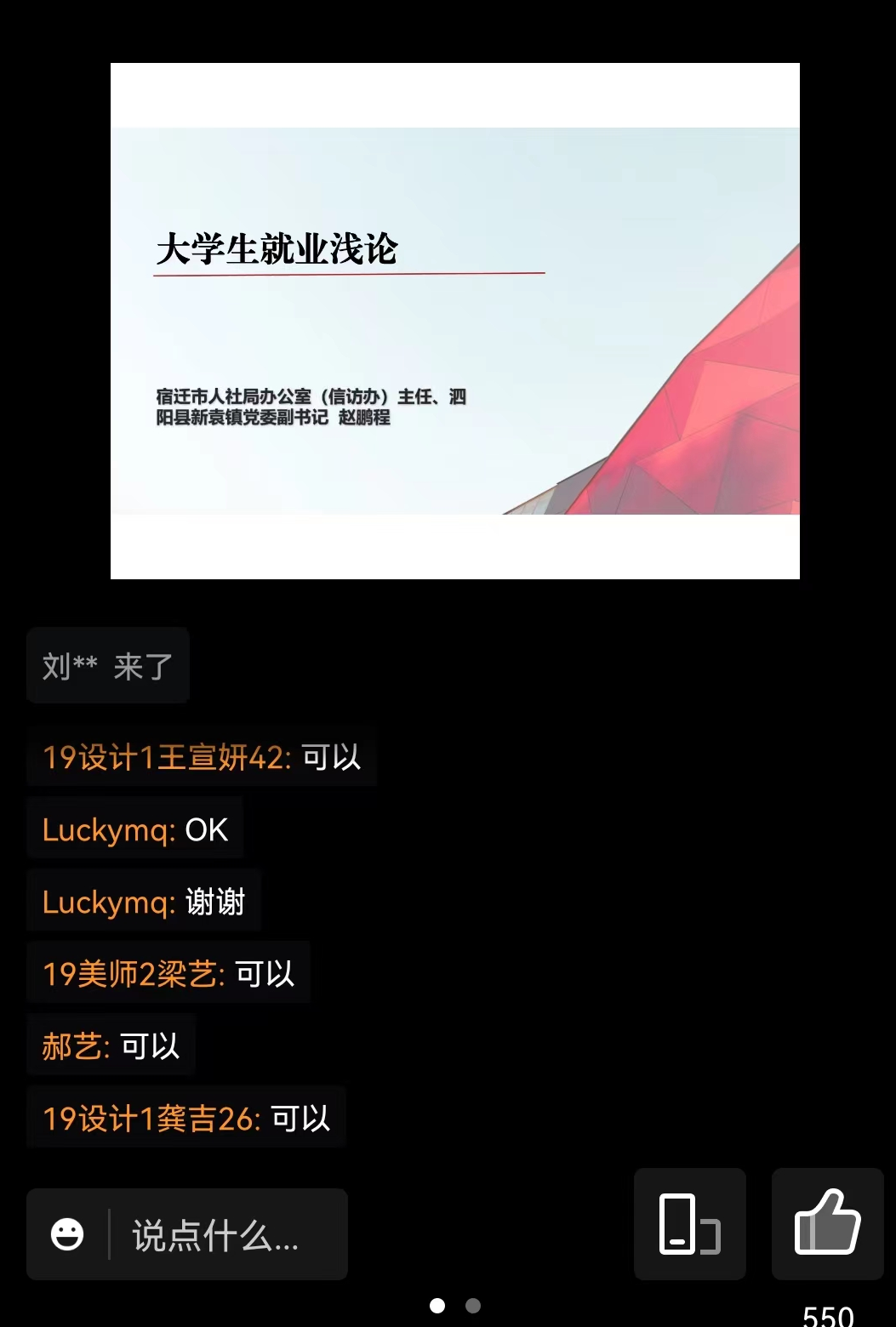 为更好地促进我院2022届毕业生高质量充分就业,进一步帮助学生树立正确的就业观和择业观,解决择业、就业中的困惑,了解目前的就业形势、就业政策,转变就业观念,提高就业技能,5月18日下午2点,艺传学院邀请宿迁市人社局信访办主任赵鹏程在腾讯会议做了题为《大学生就业浅论》的专题讲座,讲座由学院党委副书记陈虎主持。