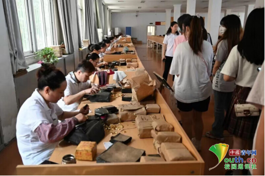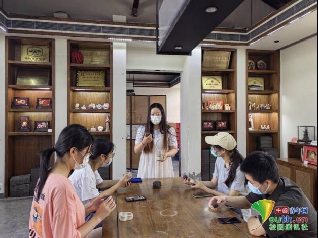 图为参观金箔工艺品制作过程。中国青年网通讯员刘子瑜摄