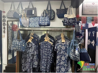 图为南通蓝印花布博物馆内手工艺品。中国青年网通讯员陆天颖摄