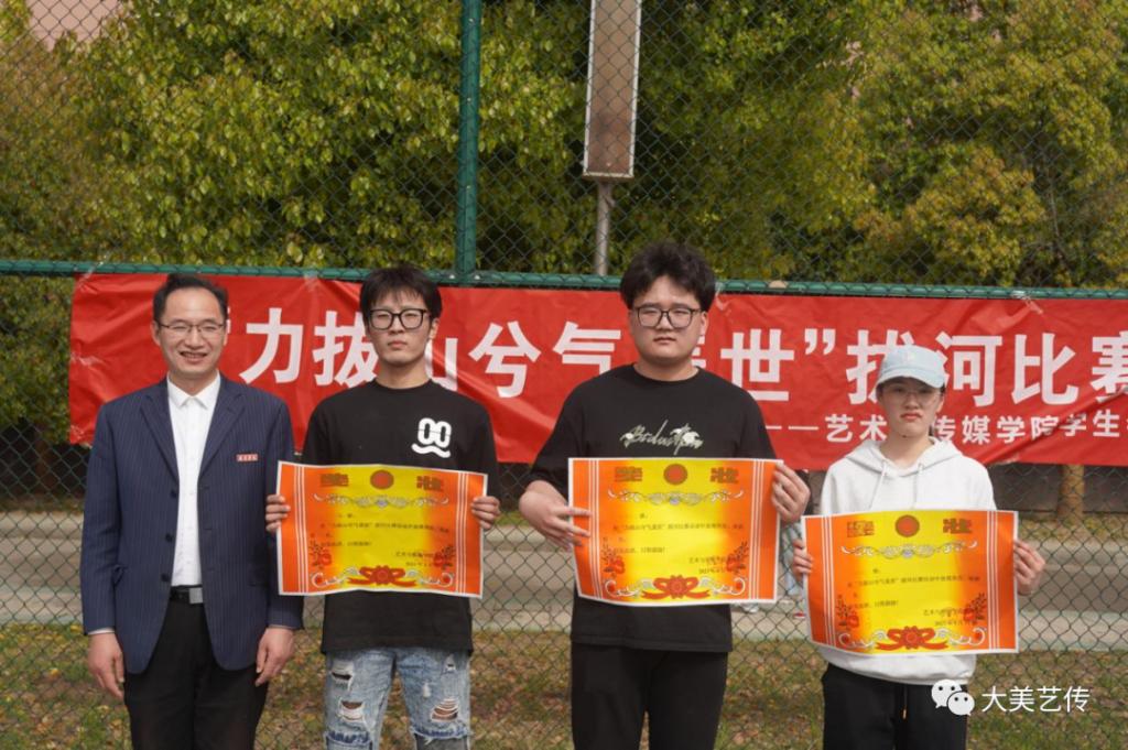 为贯彻落实党的二十大报告关于“促进群众体育和竞技体育全面发展,加快建设体育强国”的重要指示精神,丰富同学们的课余生活,增强班级凝聚力,促进学生德智体美劳全面发展,4月12日下午,艺术与传媒学院在校篮球场举行了“力拔山兮气盖世”拔河比赛。