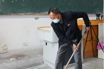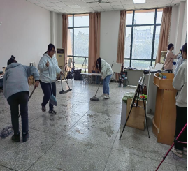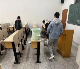 教学楼内,同学们积极分工,井然有序,逐个教室进行清理。他们不怕苦、不怕累、不畏脏,认真扫地、拖地、擦桌凳、捡纸屑、除杂物、清垃圾,为广大同学提供了良好的学习环境,展现出了奉献、友爱、互助、进步的志愿服务精神。