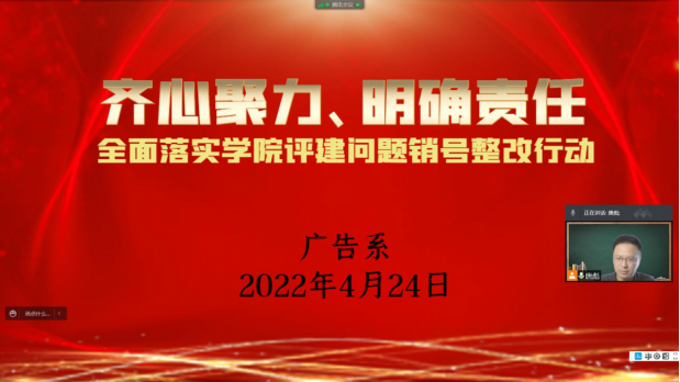 4月27日16点至17点,广告系召开线上主题会议,集中就学院的评建问题销号整改行动工作展开讨论,以明确任务,落实责任,推动执行。