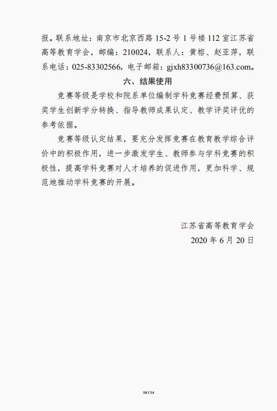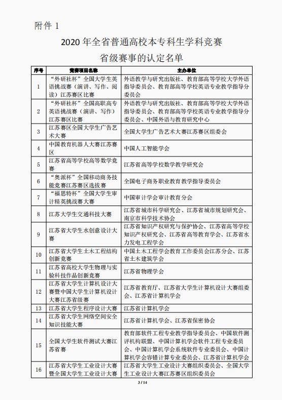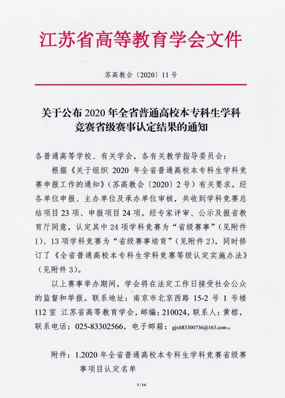 2020 年全省普通高校本专科生学科竞赛省级赛事的认定名单