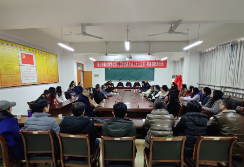 2020年1月1日下午四点,宿迁市美术家协会设计艺术委员会成立大会暨第一届委员代表大会在我院召开。会上,我校党委副书记李震致贺辞,并与市政协副主席、市美协主席丁立江共同为艺委会成立揭牌,市美协副主席兼秘书长臧成贤、我校教务处长吴绍兵、艺术学院院长马家常和党总支书记陈虎等领导及艺术界代表出席了会议。我院邵士德老师被选举为宿迁市美协设计艺委会主任。