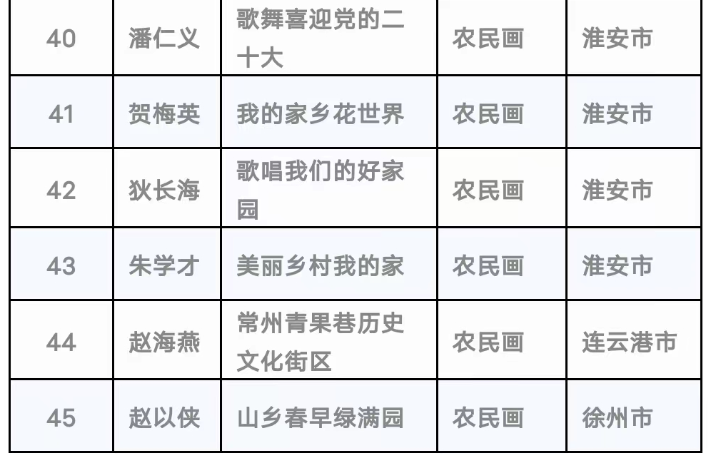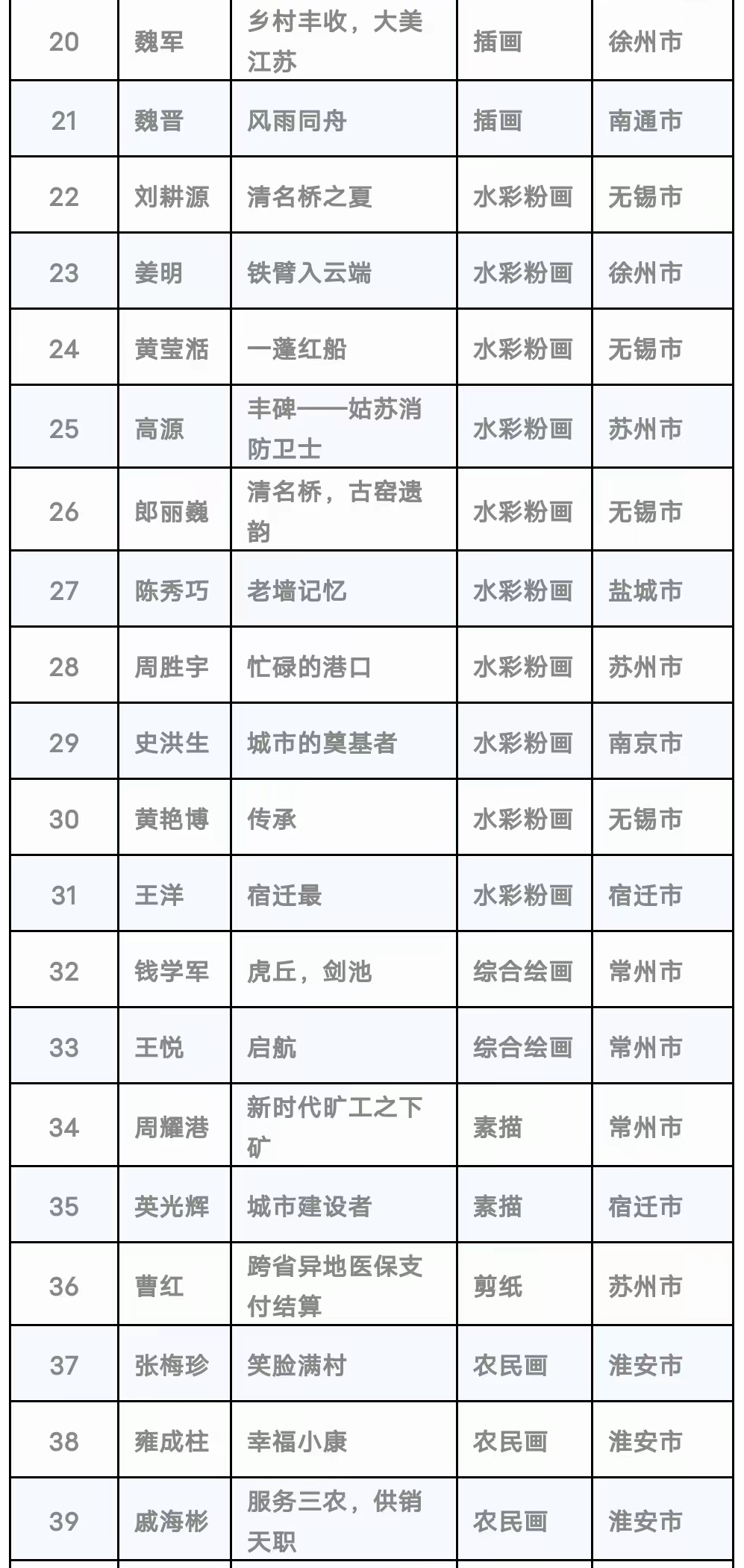 9月20日,江苏省美术家协会公众号发布公告,“新时代颂”2022江苏美术摄影主题联展美术征集作品复评工作于2022年9月19日在南京结束,在监审委员会的全程监督下,本着“公开、公平、公正”的原则,共评选出入选作品45件。